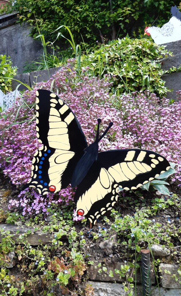 Schwalbenschwanz-Sommervogel als Gartenstecker